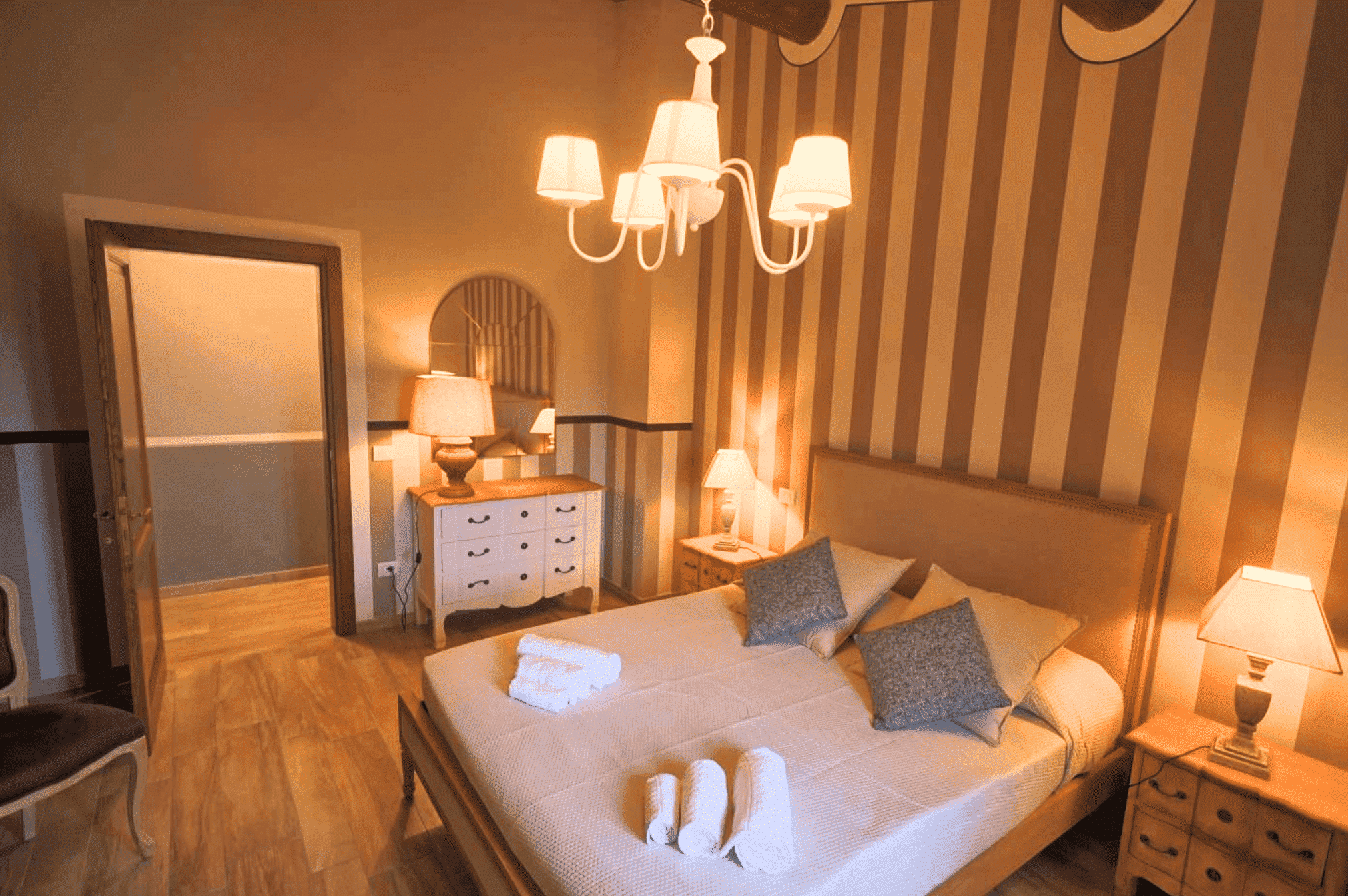 Op een aparte vleugel van het huis vind je een grote kamer met een tweepersoons- en een eenpersoonsbed. De kamer is stijlvol ingericht en beschikt over een gedeelde badkamer, Deze grote kamer is voorzien van airconditioning, luxe doucheartikelen en zachte handdoeken. Een heerlijke plek om je even terug te trekken of om tot rust te komen.
