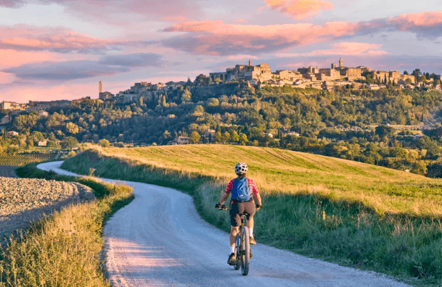 Ga mee op een avontuurlijke mountainbike tour door de Toscaanse heuvels en geniet van adembenemende uitzichten.